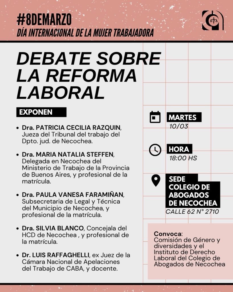 *Organizan: Comisión de genero e instituto de derecho laboral del Colegio de Abogada/os de Necochea.
