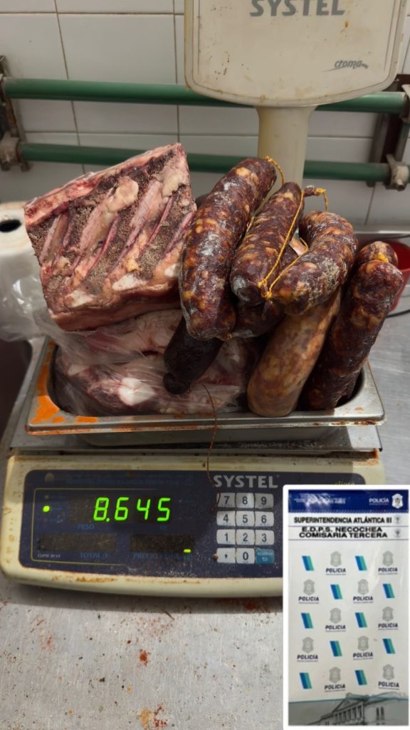 Tras revisar las cámaras de seguridad del comercio, los efectivos constataron que el hecho había sido perpetrado por un empleado del lugar. Al momento de la identificación, el hombre tenía entre sus pertenencias distintos cortes de carne vacuna y de cerdo, entre ellos asado, chuletero, peceto y chorizos, con un peso de mas de 8 kilogramos.