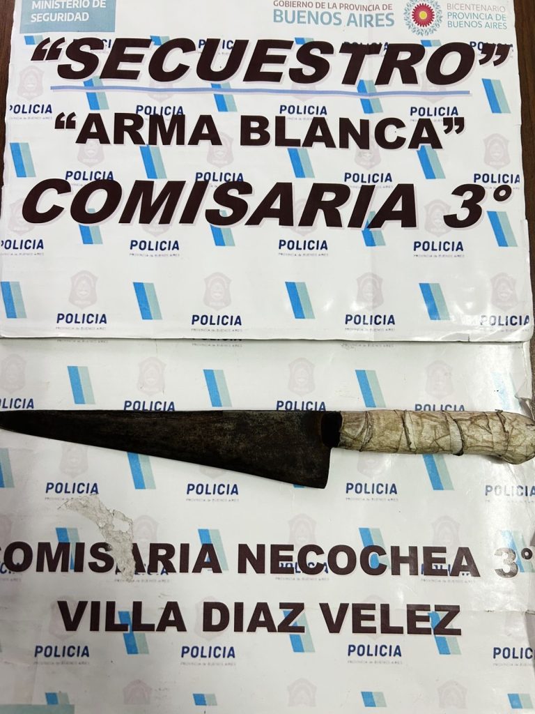 El arma fue secuestrada y el joven fue aprehendido por infracción al artículo 38 del Decreto Ley 8031/73, que sanciona la portación de armas blancas en la vía pública sin justificación.