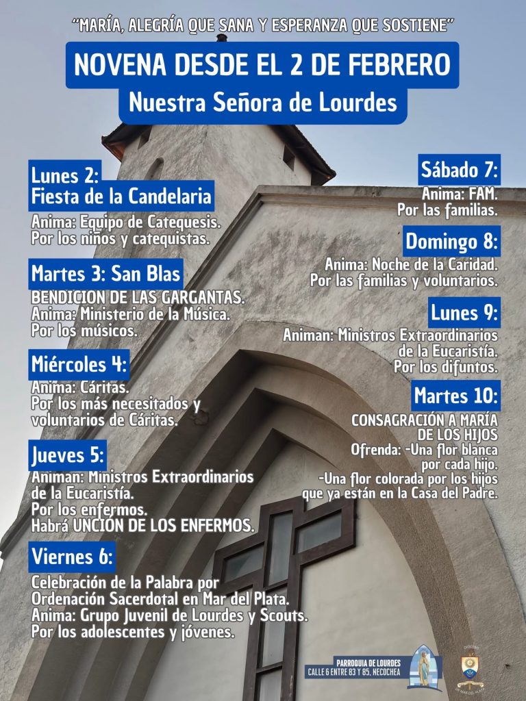 “Ya estamos palpitando unas nuevas Fiestas Patronales como familia grande de Lourdes. Desde el lunes 2 de febrero rezamos la novena en honor a nuestra Madre, Nuestra Señora de Lourdes, con diversas intenciones y animada por los distintos grupos de nuestra Parroquia.