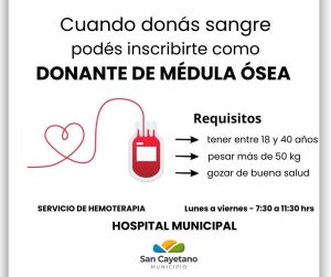San Cayetano: REGISTRO DE DONANTES DE MÉDULA ÓSEA