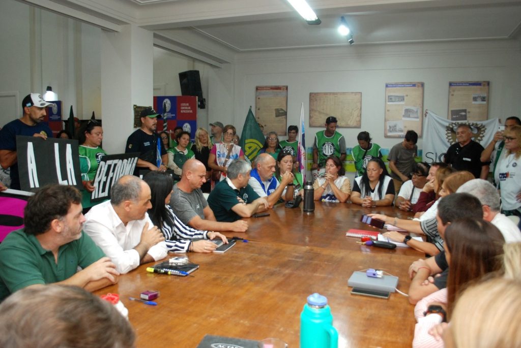 Los gremios fueron recibidos por los ediles para analizar el Proyecto de Ordenanza presentado por bloques de la oposición, mediante el cual se propone que el Concejo Deliberante exprese su rechazo a la reforma laboral y acompañe las medidas adoptadas por las organizaciones sindicales. Durante el encuentro, cada uno de los representantes sindicales expuso los fundamentos de su postura y detalló las problemáticas que atraviesan actualmente los trabajadores en distintos sectores.