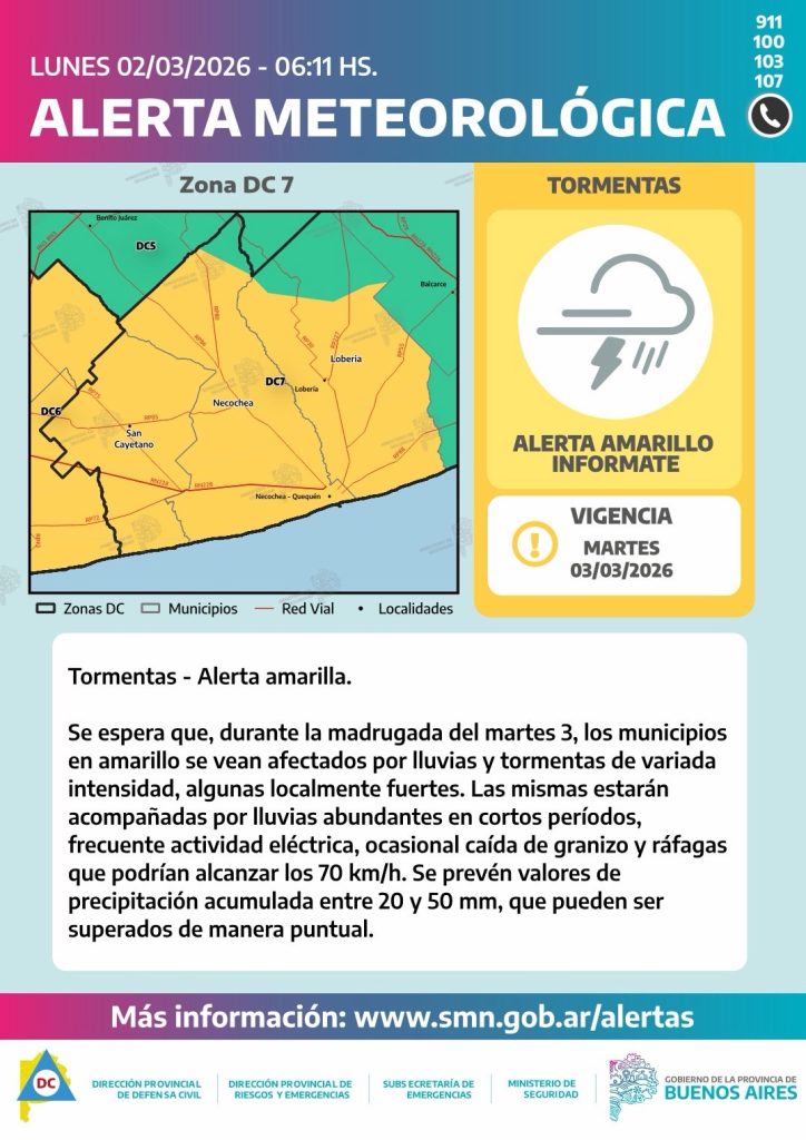 Si bien la situación es bastante generalizada en las zonas descritas, se espera que la mayor intensidad de los fenómenos se dé en horas de la tarde entre las 15 y las 21 hs sobre municipios del norte de la zona 6, zona 11 y oeste de la zona 4.