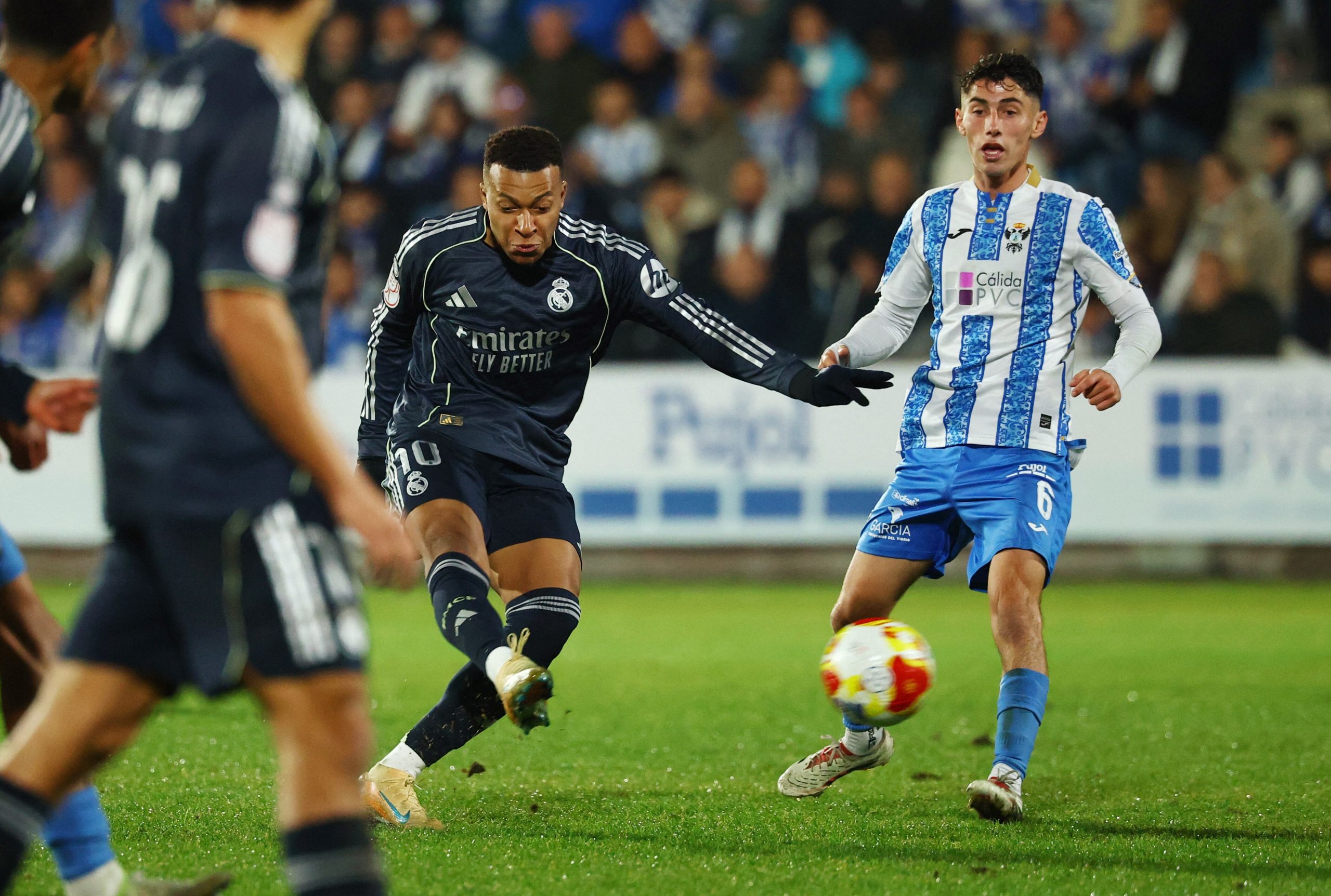 El desarrollo del partido mostró la superioridad del Real Madrid, que abrió el marcador a los 41 minutos con un penal ejecutado por Mbappé. El francés remató a la derecha, mientras el arquero Jaime González se arrojó hacia el lado opuesto. Cuatro minutos después, tras un lateral cerca de la esquina izquierda del área rival, Mbappé desbordó con un giro, recuperó la pelota sobre la línea y envió un centro al área que terminó en gol en contra de Manuel Farrando, estableciendo el 2-0 para los visitantes.
