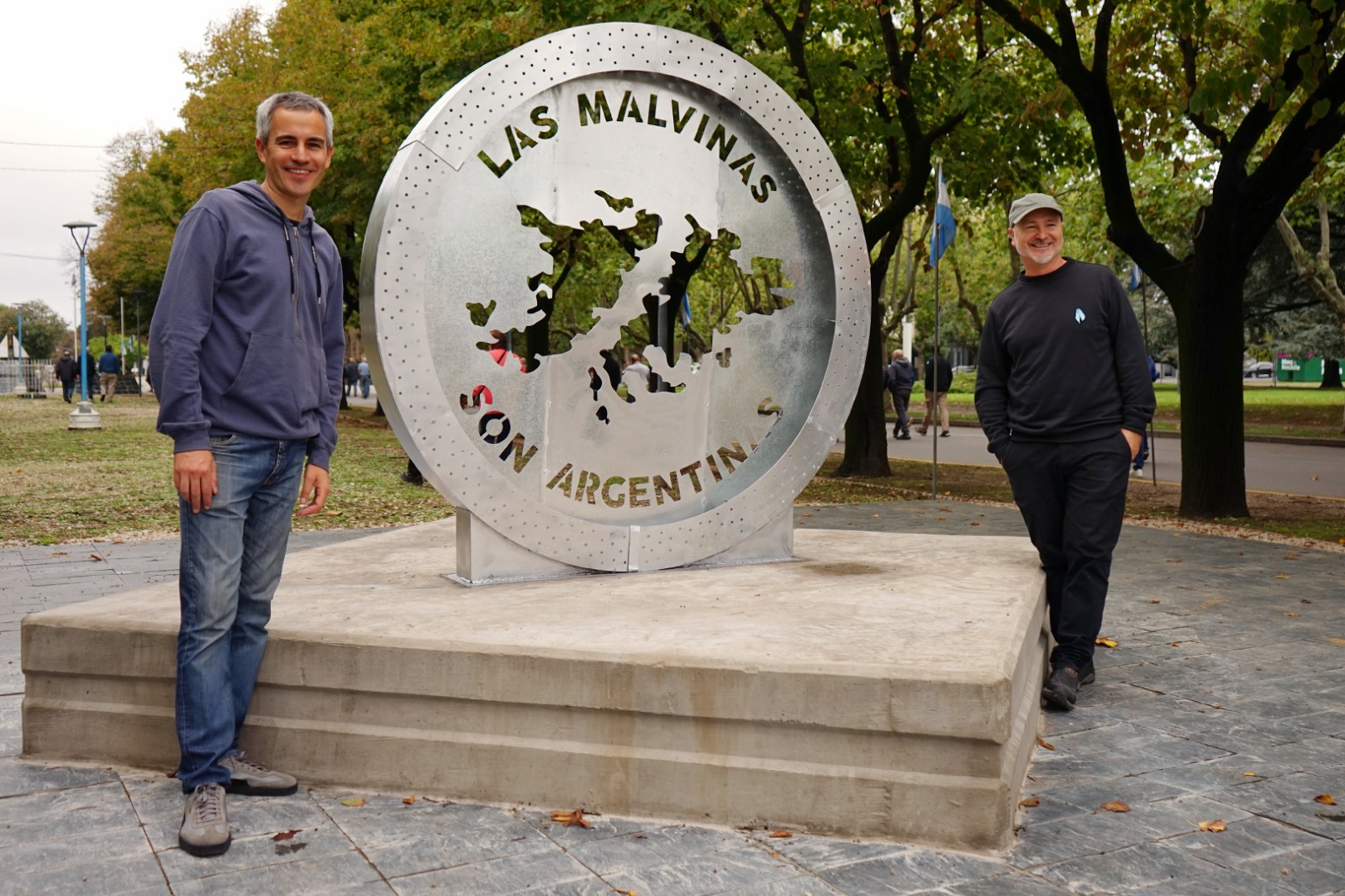 El artista Hernán Ricaldoni expresó sus emociones al presentarse a la comunidad necochense el Monumento Malvinas Argentinas, en la Plaza Dardo Rocha.
