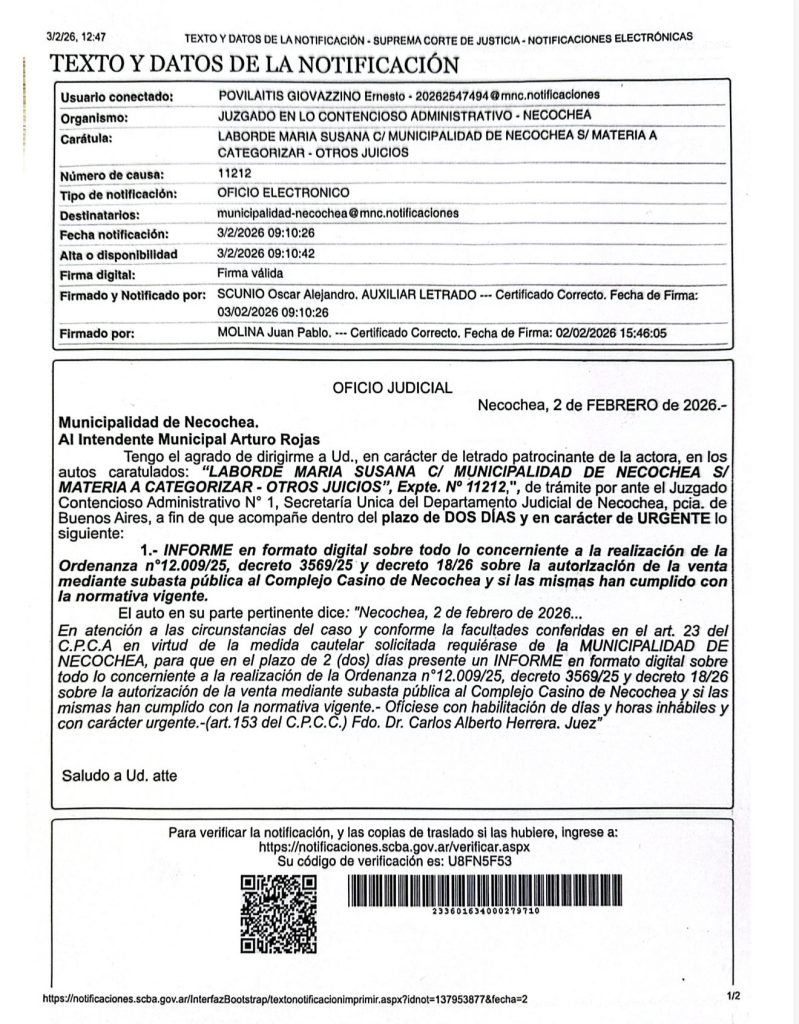 Ahora la Municipalidad de Necochea deberá contestar el pedido de información en 48 horas, ante lo cual Arturo Rojas explicó que van a estar contestando “lo antes posible” y expresó que “esperamos que el Dr. Herrera lo rechace in limine», y “que el Juez no se salga con ningún disparate avalando esto”.///