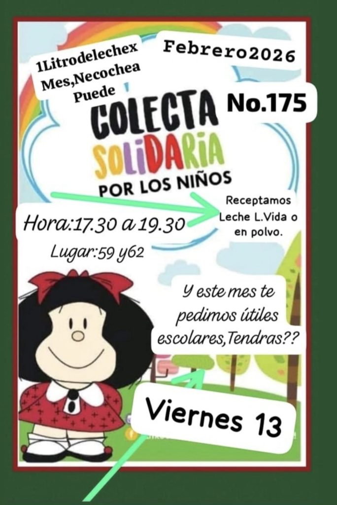 Nos proponemos además de la leche,juntar Útiles escolares para los mas pequeños.Intuimos que encada hogar hay algun lapiz, marcador, goma o mochila qué sus niñxs no usan.