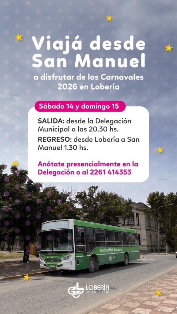 Para que los vecinos de San Manuel puedan estar presentes en el Carnaval de Lobería, se ofrecerá transporte gratuito el sábado 14 y domingo 15 de febrero.