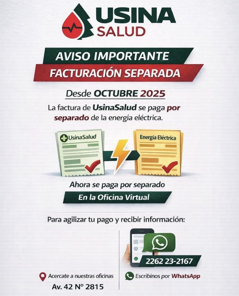 La UPC de Necochea informó que la factura de Usina Salud se paga por separado de la de energía eléctrica.