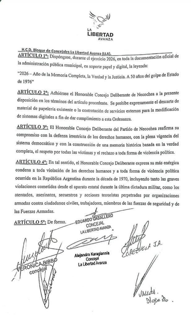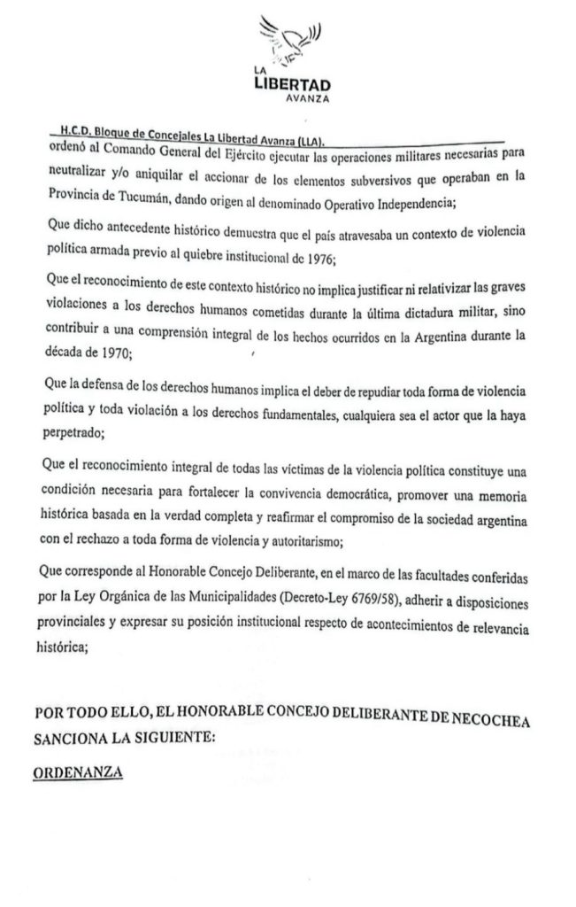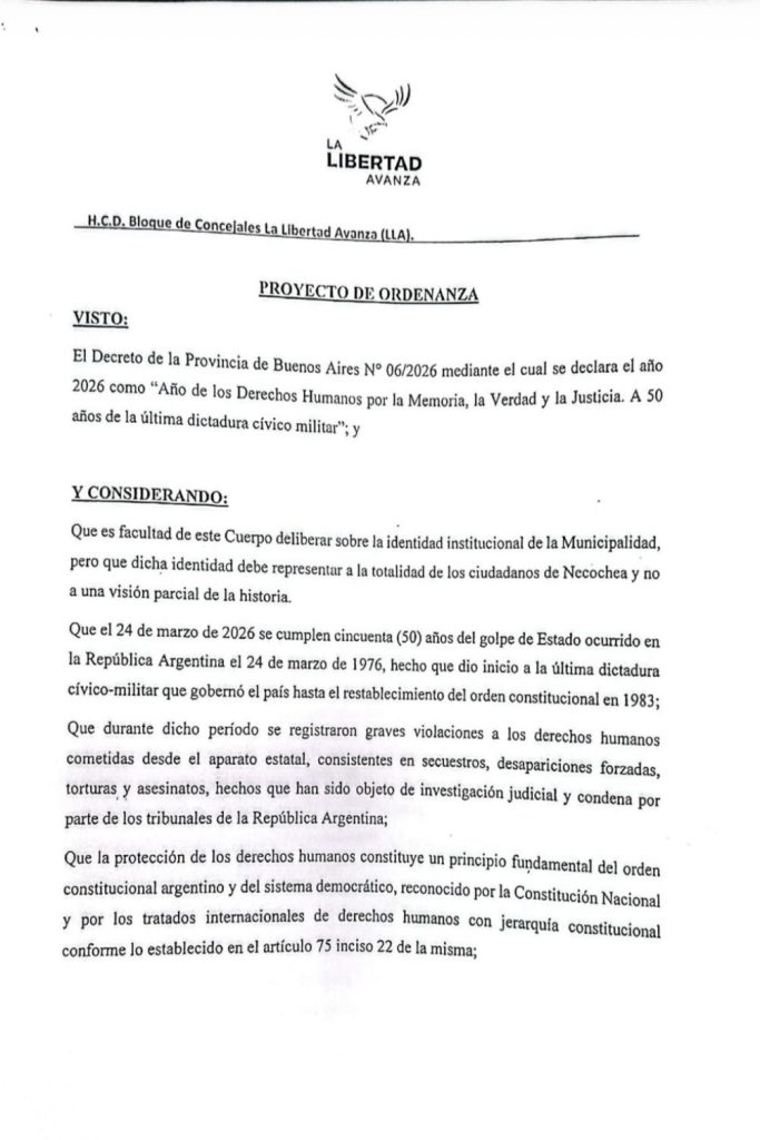 La iniciativa de La Libertad Avanza de Necochea es la siguiente: