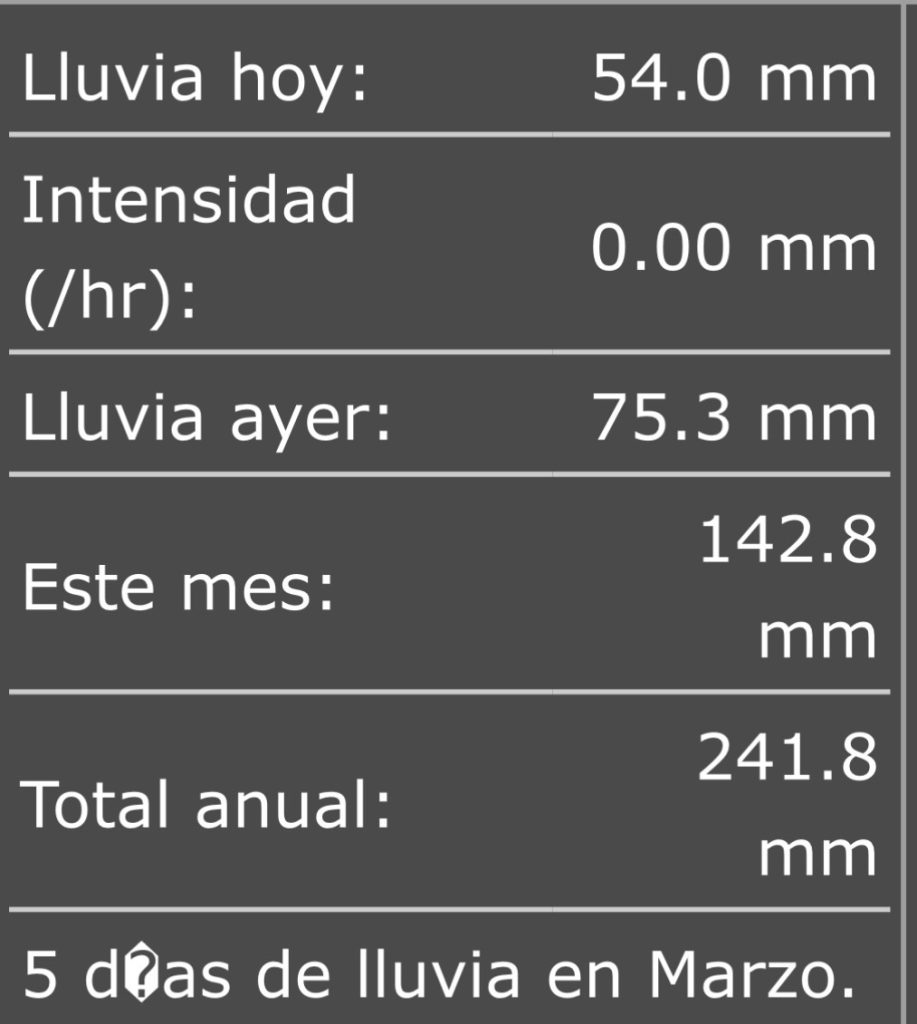 Tal lo que reflejan los datos del Radio Club local, tomando los registros de las precipitaciones de ambos días.