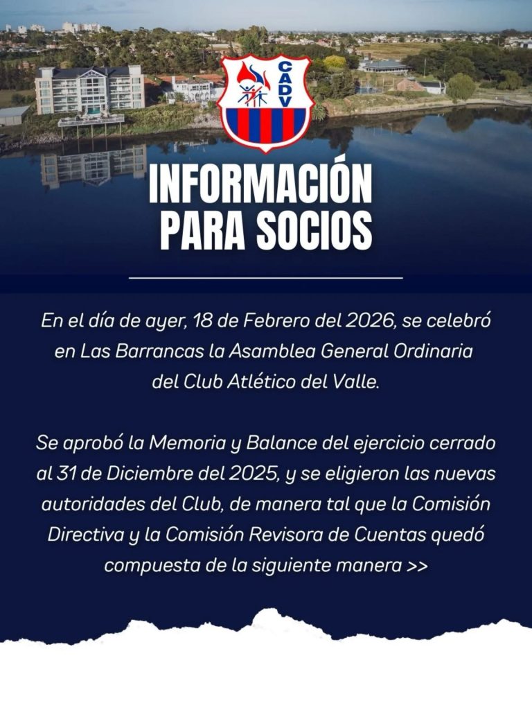 Se aprobó la Memoria y Balance del ejercicio cerrado al 31 de Diciembre del 2025, y se eligieron las nuevas autoridades del Club, de manera tal que la Comisión Directiva y la Comisión Revisora de Cuentas quedó compuesta de la siguiente manera: