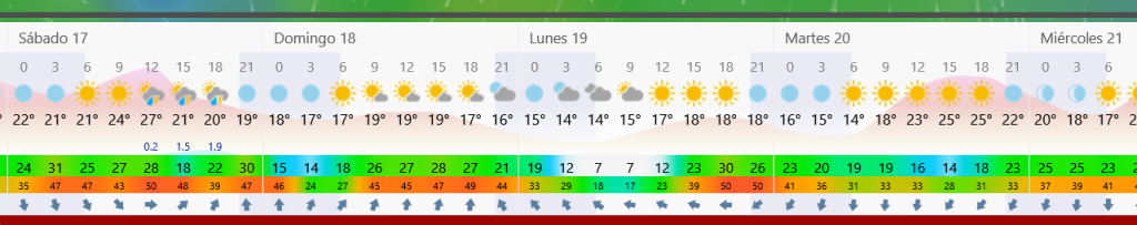 Tal lo que anticipa el Windguru y el Windy, al igual que el Servicio Meteorológico Nacional (SMN) en calidad de anticipo de lo que sucedería este fin de semana -mitad de enero- y los días posteriores al cierre de la presente semana.