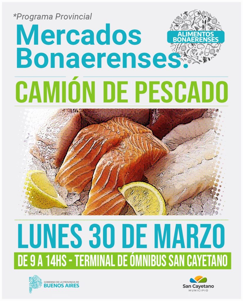 El próximo lunes 30 de marzo, vuelve el camión de pescado correspondiente al programa provincial “Mercados Bonaerenses”. Desde las 9:00 horas se instalará en el predio de la terminal de ómnibus.