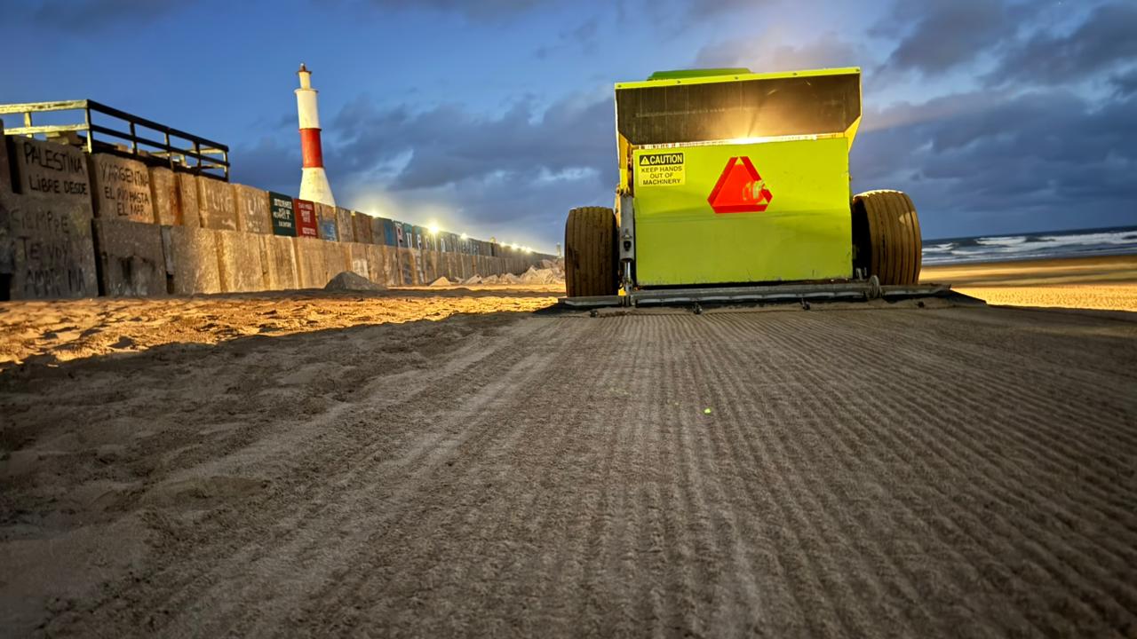 Luego de intensas jornadas de calor, en las que familias, residentes y visitantes colman el frente costero y disfrutan de la incomparable extensión de arena, se despliega diariamente un operativo integral destinado a la recolección de residuos y al acondicionamiento de la playa.