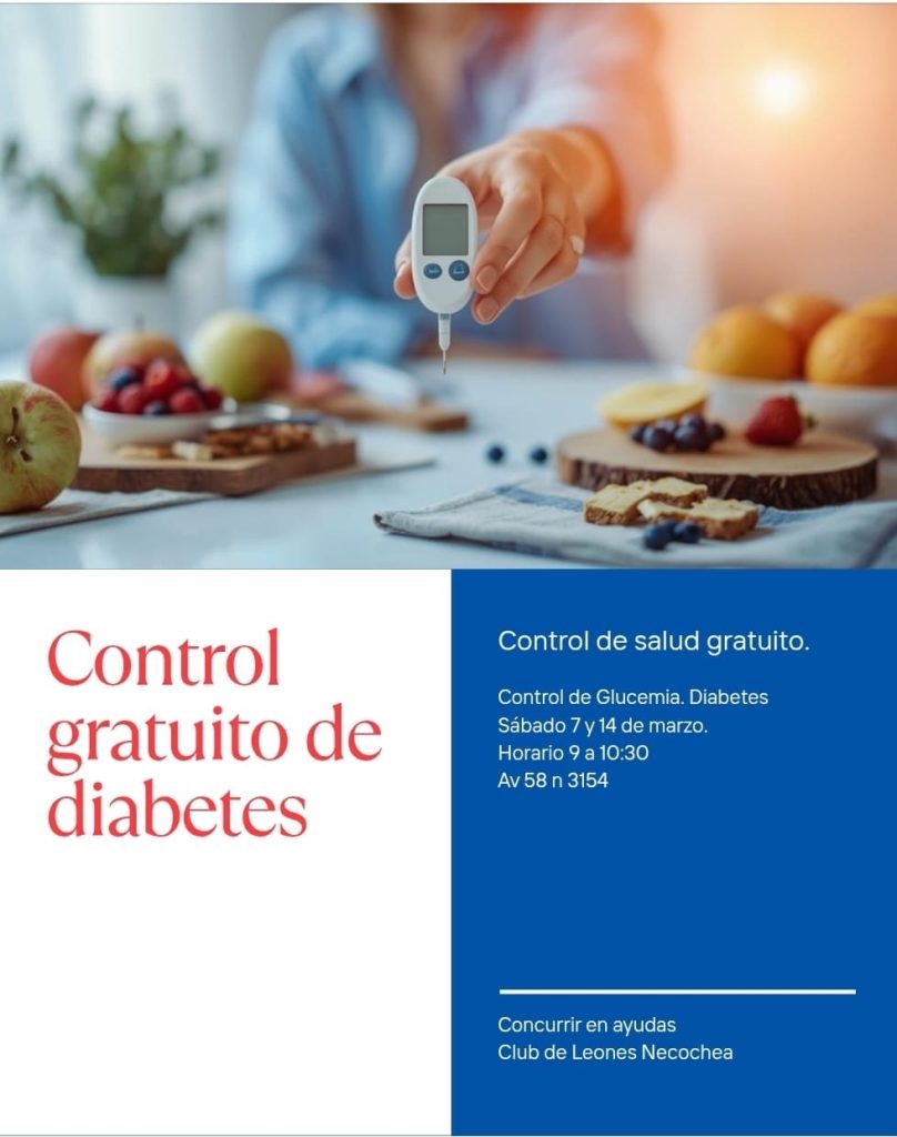 Sábado 7. Feria, control visual a niños de 6m a 18 años y control de glucemia (diabetes) concurrir en ayunas”